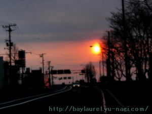 今朝の陽は、ひっそりと夕闇を抱いたような光。