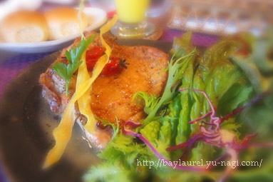 軽いサンドイッチか何かにしようかなぁー……と思っていたのだけれど、せっかく来たのだし、リッチに私は雑誌に載っていた 「チキンのグリル美人プレート」 に。旦那さんは 「ハンバーグ男爵プレート」 。