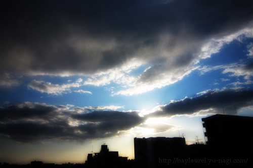 少し渋滞気味の道をゆつくり進んでいると、突然後部座席のちびっ子が 「みてみて~♪」 と嬉しそうな声を。赤信号で振り返って見てみると、明るい半月が地平線より少し高い場所に浮かんでいました。
