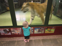 いくつかをスルーして、ライオンを見に行こう! と、熱帯動物館に向かったのですが、肝心のライオンは寝てました。代わりにトラが元気に歩き回っていて、お子様、巨大な動物の動きに大喜び。