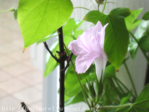 前の日蕾だった朝顔が、帰宅した夕方まで咲いていました。