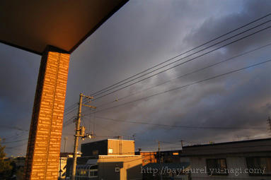 まったり休日の一日。 三人でご飯して、洗濯して、お子様と遊んで……ふと窓の外を見ると、綺麗な色だよー。 風の冷たい一日でしたが、家の中はあったか、嬉しいねぇ。