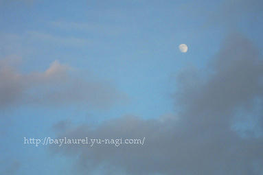 帰り道、もうすぐ満月の白い月が昇り始めていました。