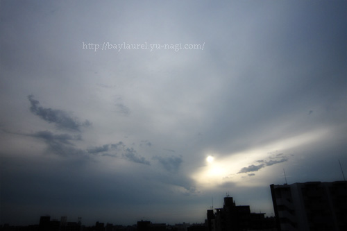 AM 6:17 空に膜が張ったような、閉じた感じだ。 終日曇りの予報なのに、暑いよ。明日は30℃を越えるらしい。道民には酷な残暑だね。 こちらは PM 17:58 同じく東の空。