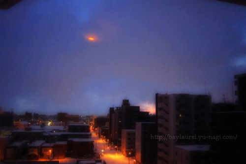 街の明かりに反射した低い雲の空を、逆さにしただけなんだけれどね。(笑)