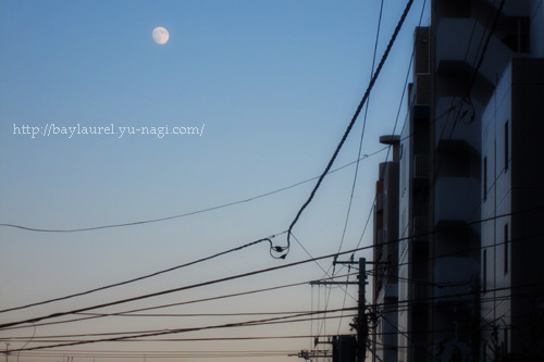 PM 15:35 東の空にもうすぐ満る月が昇り始めていました。空が澄んでいたからキレイ。 明後日には皆既月食。ほぼ全国で観測できるそうです。 私は時間帯的に難しいかな。(笑) お子様添い寝で忙しい頃だろうしね。 きっと全国ネットで中継するだろうからテレビで堪能いたします。 月食前にちょっと欠けた月見れたから、満足だ。(笑)