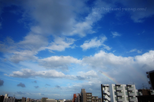 夕方、空の色合いと雲の形に惹かれて写真を撮ったら、虹が写りこんでいました。