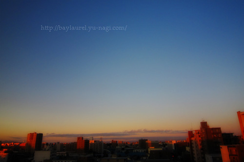 帰り道、目覚めたお子様があっちふらふら、こっちで立ち止まりしていたので、行きの倍の時間をかけての到着となりました。ちょうど空がいい色合いになっていたので、ナイスだよ!(笑)