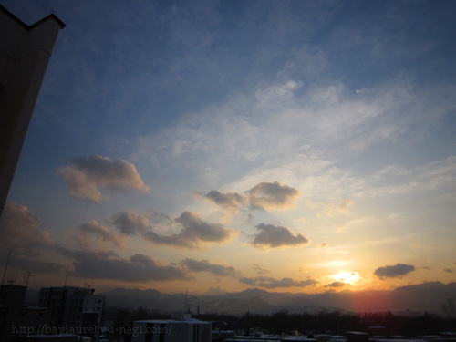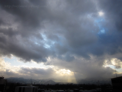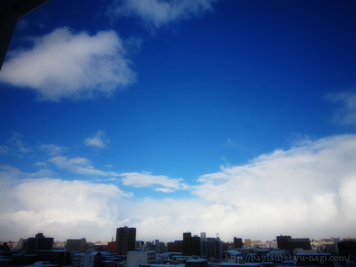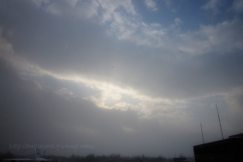 工事車両とパトカーが去った後、雲が面白い形になっていたよ。