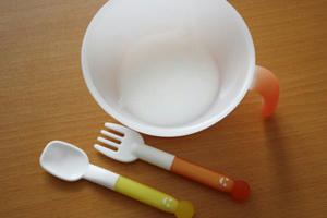 昨日はお子様用のお皿やスプーン(フォークはまだまだ使わないのにね)にハンドミキサーを用意して、つくりましたよ! 10倍粥。