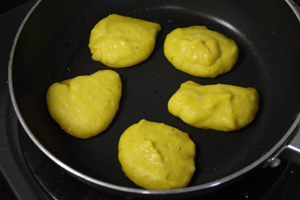 小麦粉も大さじ1に増やして、ちょっと固めのホットケーキたねぐらいにしました。