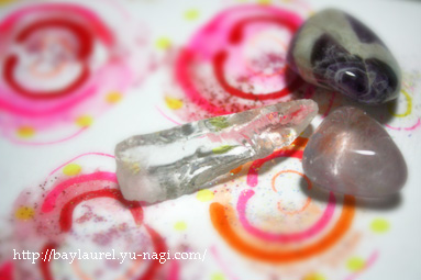 アメジストはカッコイイし! もうひとつはローズクオーツでしょうか、中で虹のような反射がキレイー。