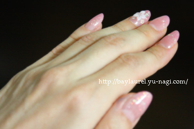 写真ではよく分かりませんが、実物はもっとキラキラのラメが入っています。陽の光でみると、透明感のある薄紅色で美味しそうなのですよ♪ お子様に食べられないようにしないと!