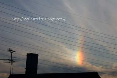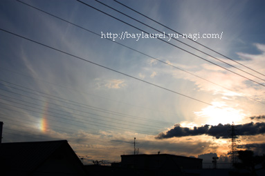あれ? この時間はあんな場所に太陽は無いはずだとよくよく見てみると、雲が虹のように光っていたのでした。びっくりですよ。