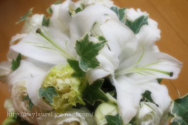 ブーケに使ったアイビーは水差しで増やして鉢植えにしよう(笑)