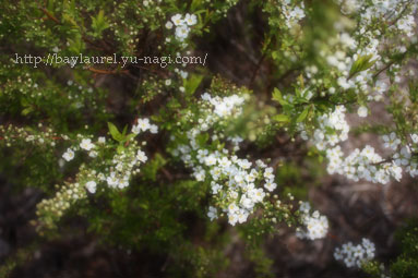 そのままのんびり高速道路下の歩道橋を渡って降りると、白い小さな花の生垣がありましたよ。ずっと何年も行き来していた道なのに、車じゃ気づかないものだね。