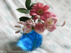 左右の家には見事な花(たぶんバラ)が咲く小庭があって、午後の日差しにキラキラしている。キレーキレー♪