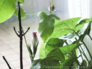 そんなこんなで一通り写真撮って、早速塗ってみてふと窓辺を見たら、また朝顔が蕾をつけていました。