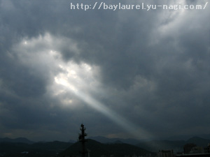 雲の切れ間にだけ緑青の色。きっと陽はもう沈んだか、沈もうかという時間。静かな音楽流したりで、こんなふうに気持ちいいのも久しぶり。切ない感じの空を眺めながら、小説書けるのはさいこうです。