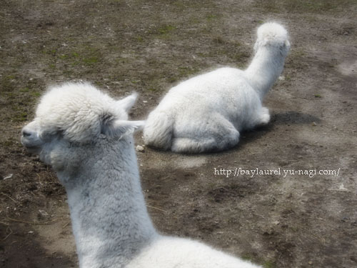 いい天気で上着も要らないくらいの陽気。もふもふ、アルパカも眠そう。(笑)