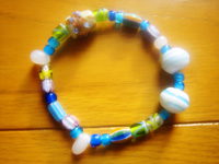 夕べ、なかなか眠らないお子様の横で、ぼへ~としながら、ちまちま作っていたブレスレットを幾つか完成させてみました。