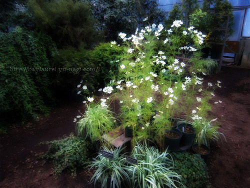 奥の方に白いコスモスが並んでいました。