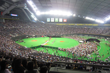 運よく2枚申し込んで2枚とも当たったので、旦那さんとお子様 (は入場券なしでOK) と3人で。札幌ドームはおよそ2年半ぶりだったので、もう、行けるだけで嬉しくて。(笑)