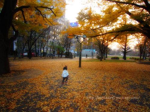 風もほとんどなく、ダウンを着ていたなら汗ばむほど。けれど公園は、すっかり冬支度の色ですねー。