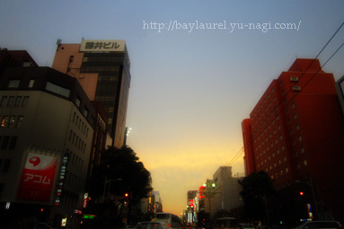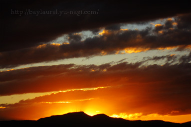 買い物終わって駐車場に戻ったら、藻岩山が輝いていました。すごぉーい♪