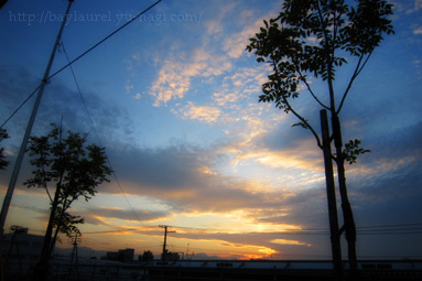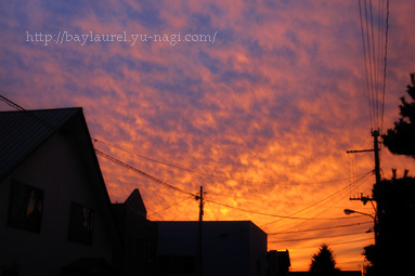下の方から日が射して、いつもと違う角度で雲を照らす。