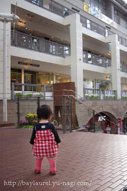 本当は昼食が終わったら買出しにでも行こうかと思ったのだけれど、どうにもご機嫌なお子様が昼寝をしないので、それなら少し運動させようと、先日記念写真用に買った赤い靴を履いてね。